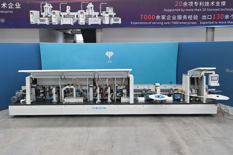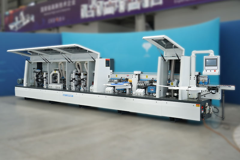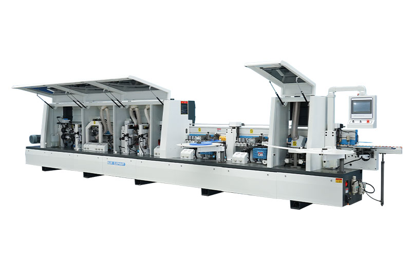 主要功能:預銑-涂膠貼邊1-六輪壓貼-烤燈1-涂膠貼邊2-六輪壓貼-烤燈2-前后齊頭-精修1-精修2-跟蹤修邊-氣動刮邊-平刮-氣動拋光1-氣動拋光2-屏幕一鍵控制前后清洗。