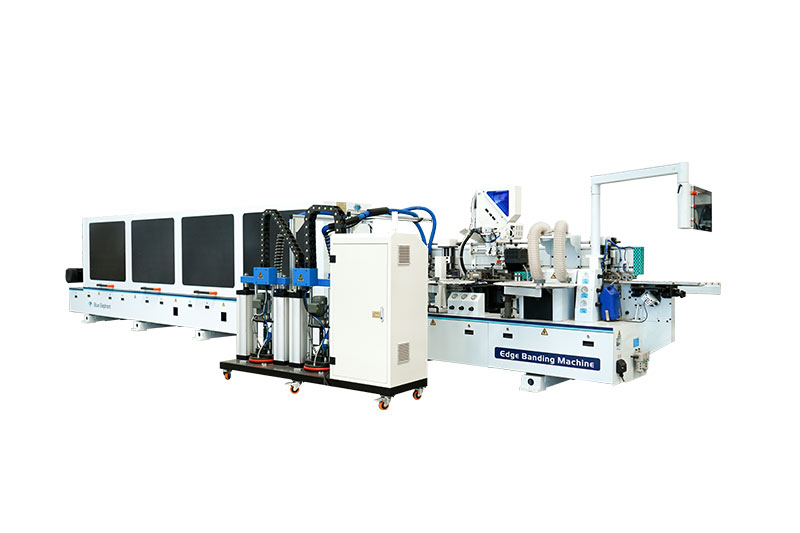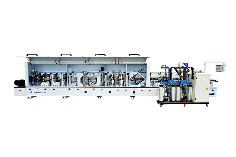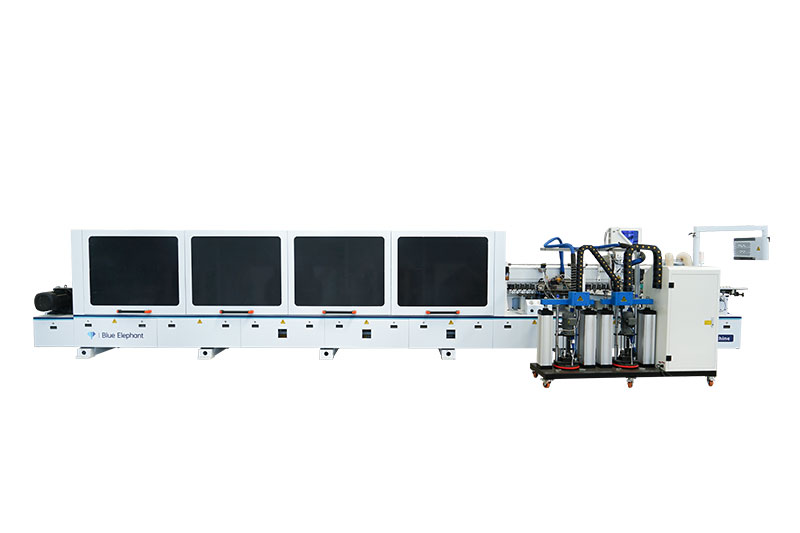 功能:前分離-預銑-上膠鍋+快速溶膠六輪壓貼1-下膠鍋+六輪壓貼2-快速齊頭-氣動精修1-氣動精修2-四頭跟蹤倒角-氣動刮邊1-氣動刮邊2-斷絲+平刮-后清洗-拋光1-拋光2